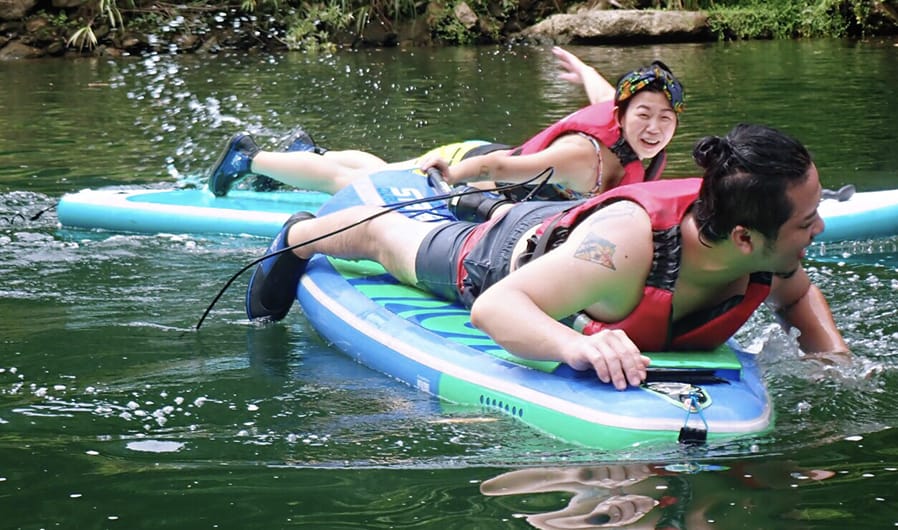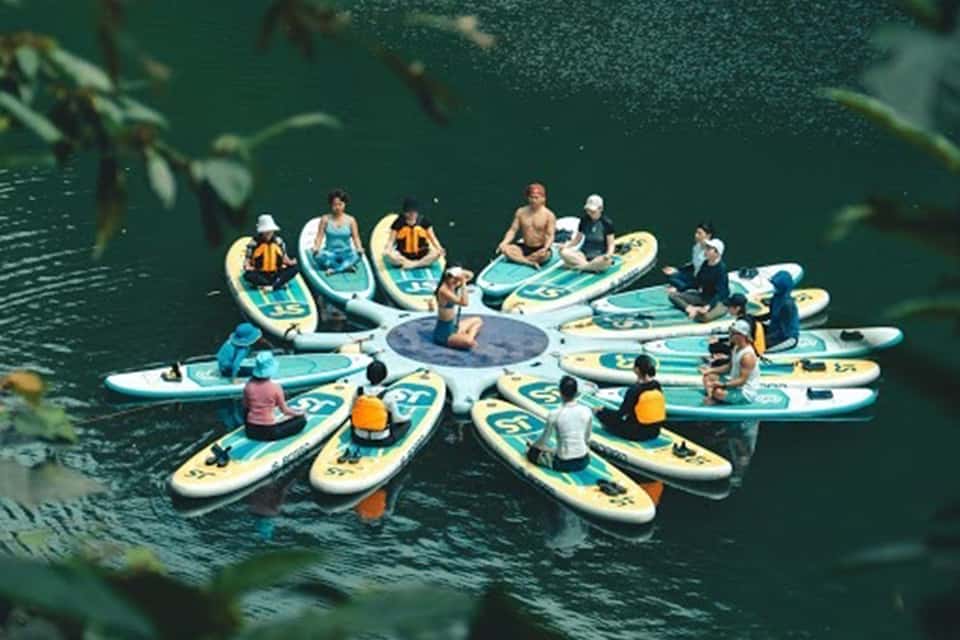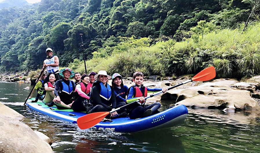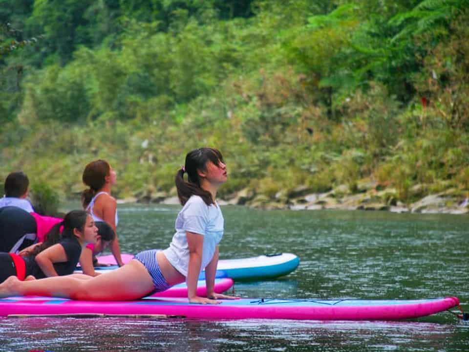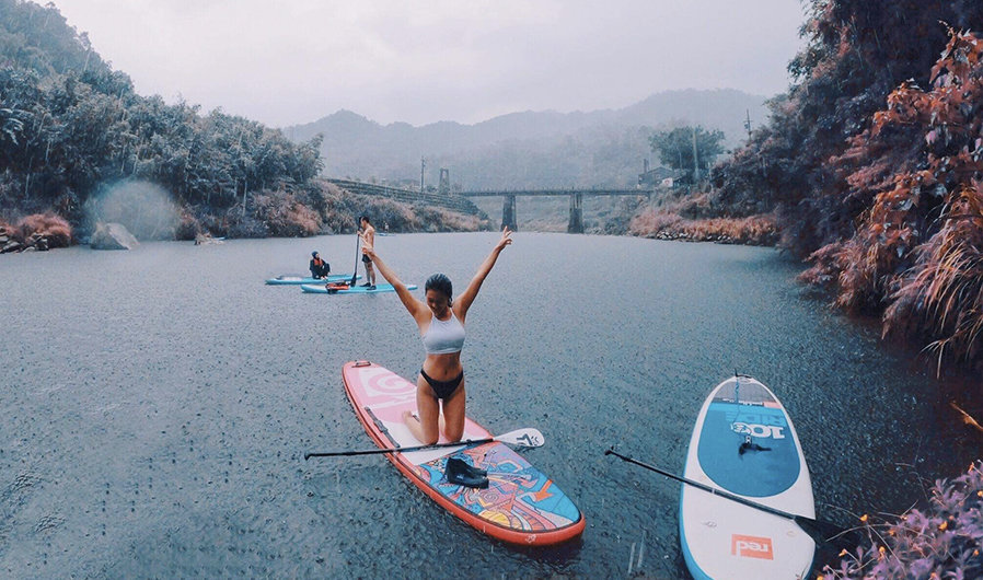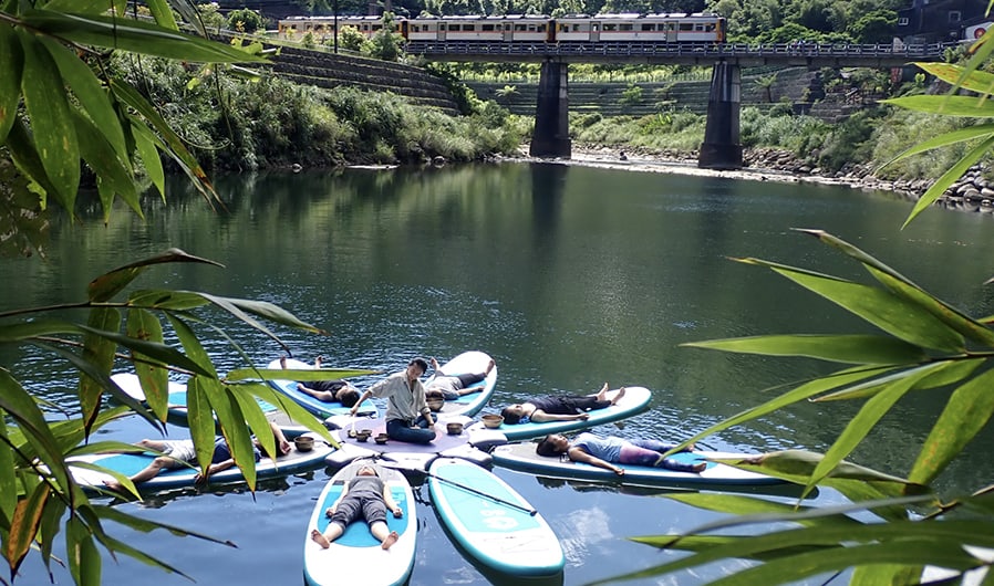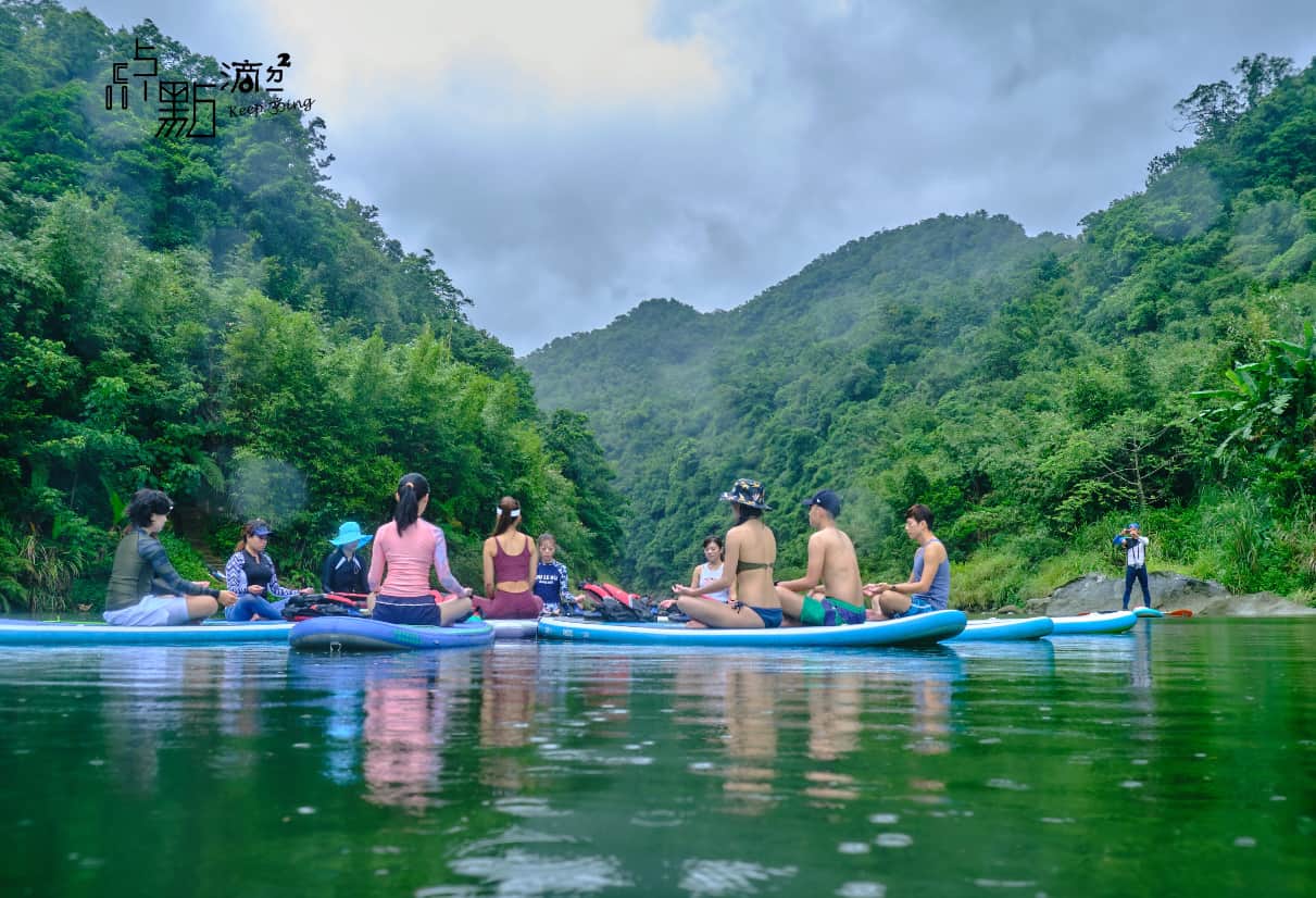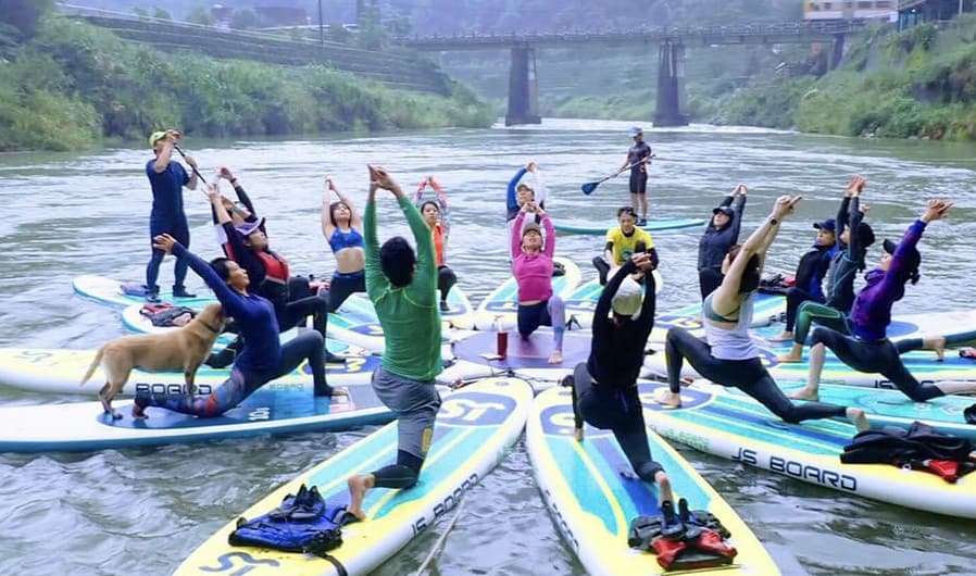 SUP 瑜珈:在青山綠水的三貂嶺基隆河上游,由瑜珈老師帶領的SUP水上瑜珈,專注與身體對話,啟動核心肌群來保持平衡,練習時會消耗更大熱量喔!一起來體驗身心靈合一的瑜珈練習,天空就是無設限的天花板,SUP板是我們的瑜珈墊,由大自然的力量讓我們深度沉靜,享受著在大自然的聲音中的動態冥想。